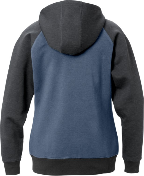 Double face fabric / Adjustable hood with drawstring / Full length front zip / Raglan sleeves / 2 front pockets with zip / Rib-knit cuffs and hem. Material: 60% cotton, 40% polyester. 894 Grey/Dark Grey: 65% cotton, 25% polyester, 10% viscose. Sizes: S-2XL. Features: Hypoallergenic: No Wash Info: – Maximum washing temperature 60°C, normal process;Do not bleach;Do not tumble dry;Iron at maximum sole-plate temperature of 150°C;Do not dry clean Gender: Female Fabric Weight m2: Colour Names: F589:M3-1 Blue/Grey Certificate