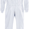 Concealed zip / Round neck with snap fastening / Elasticated cuffs / Open legs / Adjustable elasticated waistband / Raglan sleeves / Impermeable bound seam / Autoclavable / ISO class 3 / OEKO-TEX certified. Material: 97% polyester, 3% conductive fibres. Sizes: Regular: 500 Pale blue XS-3XL, 900 White XS-5XL. Features: Hypoallergenic: No Wash Info: – Maximum washing temperature 60°C, mild process;Do not bleach;Tumble drying possible, low temperature, exhaust temperature max. 60°C; Iron at maximum sole-plate temperature of 110°C without steam, steam ironing may cause irreversible damage;Professional dry cleaning in tetrachloroethene and all solvents listed for the symbol F, normal process Gender: Unisex Fabric Weight m2: 115 Colour Names: F900:M3-1 White Certificate
