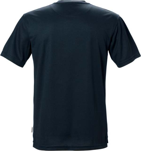 Breathable / Transports moisture / Quick drying / Round neck / Side vents / Extended back. Material: 50% Coolmax Dacron fibre, 50% polyester. Sizes: XS-3XL. Features: Hypoallergenic: No Wash Info: – Maximum washing temperature 60°C, normal process;Do not bleach;Do not tumble dry; Iron at maximum sole-plate temperature of 110°C without steam, steam ironing may cause irreversible damage;Do not dry clean Gender: Male Fabric Weight m2: 140 Colour Names: F540:M3-1 Dark Navy Certificate
