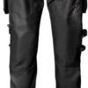 Rib-knit stretch panels at waist / Thigh panels of 4-way stretch material / 2 CORDURA-reinforced loose hanging pockets, one with 3 smaller pockets and tool loops, the other with extra pocket / 2 front pockets / Side pocket with zip / 2 back pockets / Hammer loop / Double reinforced crotch seam / CORDURA-reinforced folding rule pocket with button and loop for sheath knife / Leg pocket with zip and D-ring / CORDURA-reinforced knee pockets with outside opening / Height adjustment for knee pads in knee pocket / CORDURA-reinforced leg end / 3-needle stitching / Approved according to EN 14404 together with kneepads 124292 / OEKO-TEX certified. Material: 100% cotton. Stretch fabric 91% nylon, 9% elastane. Sizes: C44-C62, C146-C156, D84-D120. Features: Hypoallergenic: No Wash Info: – Maximum washing temperature 60°C, normal process;Do not bleach;Tumble drying possible, low temperature, exhaust temperature max. 60°C;Iron at maximum sole-plate temperature of 150°C;Do not dry clean Gender: Male Fabric Weight m2: Colour Names: F940:M3-1 Black Certificate