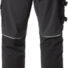 4-way stretch materials / Thigh panels and back part of durable 4-way ripstop stretch material / Stretch rib insets at waist / 2 loose-hanging CORDURA pockets, one with 3 smaller pockets, tool loops and zip pocket, one with extra pocket and zip pocket / D-ring under loose hanging pocket / 2 front pockets / 2 back pockets with zip / Hammer loop / Double reinforced crotch seam / 2 thigh pockets with zip and ventilation panels inside / Folding rule pocket in CORDURA with tool pocket, pen pocket, button and loop for sheath knife / Leg pocket with mobile phone pocket and folding rule pocket / CORDURA reinforced knee pockets with inside opening / Height adjustment for knee pads in knee pocket / CORDURA reinforced leg end, adjustable with snap fastening / Approved according to EN 14404 together with kneepads 124292 / OEKO-TEX certified. Material: 55% elastomultiester, 45% polyester. Stretch rip stop fabric 88% polyamide, 12% elastane. Sizes: C34-C48. Features: Hypoallergenic: No Wash Info: – Maximum washing temperature 60°C, normal process;Do not bleach;Do not tumble dry;Do not iron;Do not dry clean Gender: Female Fabric Weight m2: Colour Names: F940:M3-1 Black Certificate