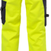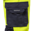 2 CORDURA reinforced, loose-hanging front pockets, 1 with 3 pockets and tool loops and 1 with extra pocket / 2 front pockets / 2 CORDURA reinforced back pockets, 1 with flap and concealed snap fastening / Double reinforced crotch seam / Hammer loop / CORDURA reinforced folding rule pocket with pen pocket and button and loop for sheath knife / Leg pocket with flap and and concealed snap fastening, mobile phone pocket with flap and velcro fastening and D-ring / CORDURA reinforced knee pockets with inside opening / Height adjustment for knee pads in knee pocket / CORDURA reinforced leg end / Approved according to EN 61482-1-2 class 1, EN 61482-1-1 ATPV: 10,6 cal/cm² HAF: 80,4% (see Electric arc table for certified garment combinations for EN 61482-1-2 class 2 and open arc according to EN 61482-1-1), EN ISO 11612 A1 B1 C1 F1, EN 1149-5, EN ISO 20471 class 2 and EN 14404 together with kneepads 124292 / Approved after 50 washes / Leasing laundry-tested according to ISO 15797 / OEKO-TEX certified. Material: 75% cotton, 24% polyester, 1% anti-static fibre. Reinforcement: 79% cotton FR, 20% polyamide, 1% anti-static fibre. Sizes: C34-C50. Features: Hypoallergenic: No Wash Info: – Maximum washing temperature 75°C, normal process;Do not bleach;Tumble drying possible, low temperature, exhaust temperature max. 60°C;Iron at maximum sole-plate temperature of 150°C;Do not dry clean Gender: Female Fabric Weight m2: Colour Names: F171:M3-1 Hi-Vis Yellow/ Navy Certificate