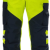 2-layer GORE-TEX PYRAD material, wind and waterproof but breathable / Dirt and oil repellent / Fully lined / Elastic detachable braces / 2 front pockets with flap and zip / 2 back pockets with flap and concealed snap fastening / Hammer loop / 2 leg pocket with flap and concealed snap fastening, 1 with phone pocket with flap and velcro fastening, D-ring and ID-card pocket / Pre-shaped knees / CORDURA reinforced knee pockets with inside opening / Height adjustment for knee pads in knee pocket / Concealed zip up to knee / Snow gaiter / Adjustable leg end / Metal free garment / Waterpillar > 10.000 mm / ePTFE membrane / Breathability RET 8,33 / Approved according to EN 61482-1-2 class 2, EN 61482-1-1 EBT: 49,1 cal/cm² HAF: 94,8% (see Electric arc table for certified garment combinations for EN 61482-1-2 class 2 and open arc according to EN 61482-1-1), EN ISO 11612 A1 A2 B2 C1 D3 E1 F1, EN ISO 11611 A1 A2 class 2, EN 1149-5, EN 13034 type PB [6], EN ISO 20471 class 2, EN 343 class 3/3 and EN 14404 together with kneepads 124292 / Approved after 30 washes. Material: 99,4% polyester, 0,6% carbon, 2-layer GORE-TEX PYRAD material, wind and waterproof but breathable. Lining: 50% meta-aramide, 50% viscose FR. Inherent flame protection. Sizes: XS-3XL. Features: Hypoallergenic: No Wash Info: – Maximum washing temperature 60°C, normal process;Do not bleach;Tumble drying possible, low temperature, exhaust temperature max. 60°C;Do not iron;Do not dry clean Gender: Male Fabric Weight m2: Colour Names: F171:M3-1 Hi-Vis Yellow/ Navy Certificate