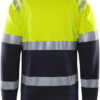 V-neck / Raglan sleeves / Rib-knit neck and cuffs / Approved according to EN 61482-1-2 class 1, EN 61482-1-1 ELIM: 9,5 cal/cm², EN ISO 11612 A1 A2 B1 C1 F1, EN 1149-5 and EN ISO 20471 class 1 / Approved after 25 washes / Leasing laundry-tested according to ISO 15797 / OEKO-TEX certified. Material: 54% modacrylic, 44% cotton, 2% anti-static fibre. Sizes: XS-4XL. Features: Hypoallergenic: No Wash Info: – Maximum washing temperature 60°C, normal process;Do not bleach;Tumble drying possible, low temperature, exhaust temperature max. 60°C;Iron at maximum sole-plate temperature of 150°C;Do not dry clean Gender: Male Fabric Weight m2: Colour Names: F171:M3-1 Hi-Vis Yellow/ Navy Certificate
