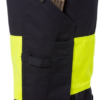 Dirt, oil and water-repellent / 2 front pockets / D-ring at waistband / 2 CORDURA reinforced back pockets with flaps / Leg pocket with flap and concealed snap fastening, mobile phone pocket with flap and velcro fastening and D-ring / Hammer loop / CORDURA reinforced folding rule pocket with tool pocket, button and loop for sheath knife / Pre-shaped knees / CORDURA reinforced knee pockets with inside opening / Height adjustment for knee pads in knee pocket / CORDURA reinforced leg ends / 2-needle stitching on reflective tape / Adjustable leg length with 5 cm hem allowance / Approved according to EN 14404 together with kneepads 124292, EN 61482-1-2 class 1, EN 61482-1-1 EBT: 12,8 cal/cm² HAF: 84,2% (see Electric arc table for certified garment combinations for EN 61482-1-2 class 2 and open arc according to EN 61482-1-1), EN ISO 11612 A1 B1 C1 E2 F1, EN ISO 11611 A1 class 1 (see Flame and welding table for certified garment combinations), EN 1149-5, EN 13034 Type PB [6] and EN ISO 20471 cl 1 / Approved after 50 washes / Leasing laundry-tested according to ISO 15797 / OEKO-TEX certified. Material: 45% modacrylic, 35% cotton, 18% polyamide, 2% anti-static fibre. Reinforcement: 79% cotton FR, 20% polyamide, 1% anti-static fibre. Sizes: C34-C50. Features: Hypoallergenic: No Wash Info: – Maximum washing temperature 75°C, normal process;Do not bleach;Tumble drying possible, low temperature, exhaust temperature max. 60°C;Iron at maximum sole-plate temperature of 150°C;Do not dry clean Gender: Female Fabric Weight m2: Colour Names: F171:M3-1 Hi-Vis Yellow/ Navy Certificate