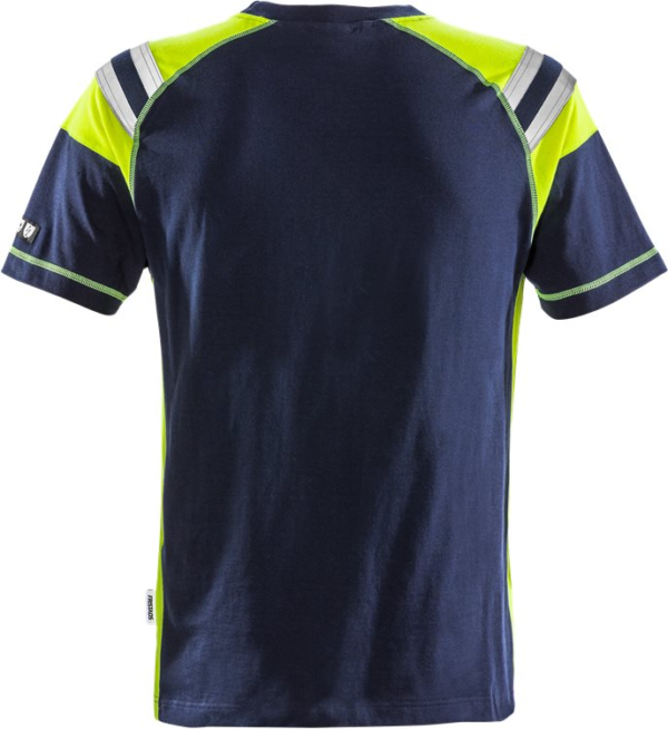 Reflective detail on shoulders / Rib-knit neck / Worn together with EN ISO 11612 garments / Approved according to EN ISO 14116 Index 3 and EN 1149-5 / Leasing-laundry tested according to ISO 15797 / OEKO-TEX certified. Material: 60% modacrylic, 37% cotton, 3% anti-static fibre. Inherent flame protection. Sizes: XS-4XL. Features: Hypoallergenic: No Wash Info: – Maximum washing temperature 60°C, normal process;Do not bleach;Tumble drying possible, low temperature, exhaust temperature max. 60°C;Iron at maximum sole-plate temperature of 150°C;Do not dry clean Gender: Male Fabric Weight m2: Colour Names: F540:M3-1 Dark Navy Certificate