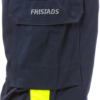 2 front pockets / 2 reinforced back pockets with flap and velcro fastening / Double reinforced crotch seam / Reinforced bellowed folding rule pocket with flap and concealed snap fastening, button and loop for sheath knife, pen pocket / Leg pocket with flap and concealed snap fastening / Knee pockets with inside opening for height-adjustable knee pads / Visibility details on sides of knees / Adjustable leg length with 5 cm hem allowance / Metal free / Reinforcement on front leg and leg end / Approved according to EN 61482-1-2 class 1, EN 61482-1-1 ATPV: 8,0 cal/cm² HAF 78,2%. EN ISO 11612 A1 A2 B1 C1 D3 E3 F1, EN ISO 11611 A1 A2 class 1 (see Flame and welding table for certified garment combinations) and EN 14404 together with kneepads 124292 / Approved after 50 washes / OEKO-TEX certified. Material: 60% viscose FR, 20% wool, 10% lyocell, 10% polyamide. Reinforcement 55% viscose FR, 40% wool, 5% polyamide. Inherent flame protection. Sizes: C44-C62, D84-D120. Features: Hypoallergenic: No Wash Info: – Maximum washing temperature 60°C, normal process;Do not bleach;Tumble drying possible, normal temperature, exhaust temperature max. 80°C;Iron at maximum sole-plate temperature of 150°C;Do not dry clean Gender: Male Fabric Weight m2: Colour Names: F556:M3-1 Navy/ Hi-Vis Yellow Certificate