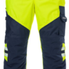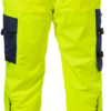 Airtech breathable, wind and waterproof / Detachable braces with fleece yoke at back / 2 front pockets with concealed zip / 2 bellowed back pocket with flap and velcro fastening / CORDURA-reinforced folding rule pocket with tool pocket, pen pocket, button and loop for sheath knife / Leg pocket with flap and velcro fastening, mobile phone pocket with flap and velcro fastening, D-ring / CORDURA-reinforced knee pockets with inside opening / Height adjustment for knee pads in knee pocket / Concealed zip up to knees / Snow lock / Adjustable leg ends / Waterpillar 10.000 mm / Breathability Airtech material RET <12 / Approved according to EN 14404 together with kneepads 124292, EN ISO 20471 class 2 and EN 343 class 3/3 / Colour 271 is approved according to RIS-3279-TOM: 2016 Issue 1 UK Railway Standard / Approved after 25 washes / Leasing-laundry tested according to ISO 15797 / OEKO-TEX certified. Material: Airtech, 100% polyester, breathable, wind and waterproof. Lining: 100% polyester. Reinforcement 100% polyamide. Sizes: 171 Hi-vis Yellow/Navy XS-4XL. The rest of the colours XS-3XL. Features: Hypoallergenic: No Wash Info: - Maximum washing temperature 60°C, normal process;Do not bleach;Tumble drying possible, low temperature, exhaust temperature max. 60°C; Iron at maximum sole-plate temperature of 110°C without steam, steam ironing may cause irreversible damage;Do not dry clean Gender: Male Fabric Weight m2: Colour Names: F171:M3-1 Hi-Vis Yellow/ Navy Certificate