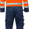 Front placket opening with two-way zip to top of collar and snap fastening / 2 chest pockets with zip / 1 bellowed chest pocket with flap and snap fastening, D-ring and penstrap / Inside pocket with button / Adjustable waist and cuffs / D-ring at waistband / Side openings with snap fastening / Double reinforced crotch seam / 2 back pockets with flap and velcro fastening / Hammer loop / CORDURA reinforced folding rule pocket with tool pocket, button and loop for sheath knifes / Leg pocket with flap and velcro fastening, mobile phone pocket with flap and velcro fastening, D-ring and ID-card pocket / Pre-shaped knees / CORDURA reinforced knee pockets with inside opening / Height adjustment for knee pads in knee pocket / CORDURA-reinforced leg ends / Approved according to EN 14404 together with kneepads 124292 and EN ISO 20471 class 3 / Approved after 50 washes / Leasing laundry-tested according to ISO 15797 / OEKO-TEX certified. Material: 80% polyester, 20% cotton, dirt, oil and water repellent. Other material in 65% polyester, 35% cotton. Sizes: S-3XL. Features: Hypoallergenic: No Wash Info: – Maximum washing temperature 85°C, normal process;Do not bleach;Tumble drying possible, low temperature, exhaust temperature max. 60°C;Iron at maximum sole-plate temperature of 150°C;Do not dry clean Gender: Male Fabric Weight m2: Colour Names: F271:M3-1 Hi-Vis Orange/ Navy Certificate