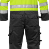 Front placket opening with two-way zip to top of collar and snap fastening / 2 chest pockets with zip / 1 bellowed chest pocket with flap and snap fastening, D-ring and penstrap / Inside pocket with button / Adjustable waist and cuffs / D-ring at waistband / Side openings with snap fastening / Double reinforced crotch seam / 2 back pockets with flap and velcro fastening / Hammer loop / CORDURA reinforced folding rule pocket with tool pocket, button and loop for sheath knifes / Leg pocket with flap and velcro fastening, mobile phone pocket with flap and velcro fastening, D-ring and ID-card pocket / Pre-shaped knees / CORDURA reinforced knee pockets with inside opening / Height adjustment for knee pads in knee pocket / CORDURA-reinforced leg ends / Approved according to EN 14404 together with kneepads 124292 and EN ISO 20471 class 3 / Approved after 50 washes / Leasing laundry-tested according to ISO 15797 / OEKO-TEX certified. Material: 80% polyester, 20% cotton, dirt, oil and water repellent. Other material in 65% polyester, 35% cotton. Sizes: S-3XL. Features: Hypoallergenic: No Wash Info: – Maximum washing temperature 85°C, normal process;Do not bleach;Tumble drying possible, low temperature, exhaust temperature max. 60°C;Iron at maximum sole-plate temperature of 150°C;Do not dry clean Gender: Male Fabric Weight m2: Colour Names: F196:M3-1 Hi-Vis Yellow/ Black Certificate