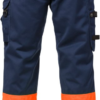 2 tuckable CORDURA reinforced loose-hanging front pockets, left pocket with extra pocket and right pocket with 3 pockets and tool loops / 2 front pockets / D-ring at waistband / Double reinforced crotch seam / 2 back pockets, 1 with flap and velcro fastening / Leg pocket with flap and velcro fastening, phone pocket with flap and velcro fastening, D-ring and ID-card pocket / Hammer loop / CORDURA reinforced folding rule pocket with tool pocket, 2 buttons and loops for 2 sheath knifes / Pre-shaped knees / CORDURA reinforced knee pockets with inside opening / Height adjustment for knee pads in knee pocket / CORDURA reinforced leg ends / Approved according to EN 14404 together with kneepads 124292 and EN ISO 20471 class 1 / Approved after 50 washes / Leasing laundry-tested according to ISO 15797 / OEKO-TEX certified. Material: 80% polyester, 20% cotton, dirt, oil and water repellent. Other material in 65% polyester, 35% cotton. Reinforcement in 100% polyamide. Sizes: C44-C66, C146-C156, D84-D120. Features: Hypoallergenic: No Wash Info: – Maximum washing temperature 85°C, normal process;Do not bleach;Tumble drying possible, low temperature, exhaust temperature max. 60°C;Iron at maximum sole-plate temperature of 150°C;Do not dry clean Gender: Male Fabric Weight m2: 300 Colour Names: F271:M3-1 Hi-Vis Orange/ Navy Certificate