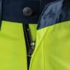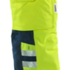 Stretch panels at sides, yoke and crotch / 2 side pockets / D-ring / 2 back pockets with zip / Double reinforced crotch seam / Large bellowed leg pocket with folding rule pocket and document pocket with velcro fastening / Multifunction leg pocket with zip pocket, phone pocket, ID card pocket and folding rule pocket / CORDURA-reinforced knee pockets with inside opening / Height adjustment for knee pads in knee pocket / CORDURA-reinforced leg end / Approved according to EN 14404 together with kneepads 124292 and EN ISO 20471 class 2 / Approved after 25 washes / OEKO-TEX certified. Material: 80% polyester, 20% cotton, dirt, oil and water-repellent. Other material in 65% polyester, 35% cotton. Stretch fabric 91% nylon, 9% elastane. Sizes: C44-C66, C146-C156, D84-D120. Features: Hypoallergenic: No Wash Info: – Maximum washing temperature 60°C, normal process;Do not bleach;Tumble drying possible, low temperature, exhaust temperature max. 60°C;Do not iron;Do not dry clean Gender: Male Fabric Weight m2: Colour Names: K171:M3-1 Hi-Vis Yellow/ Navy Certificate
