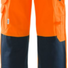 2 side pockets / 2 back pockets / D-ring / Leg pocket with flap and velcro fastening, phone pocket with flap and velcro fastening / Folding rule pocket with pen pocket and button and loop for sheath knife / Knee pockets with outside opening / Height adjustment for knee pads in knee pockets / Approved according EN 14404 together with kneepads 124292 and EN ISO 20471 class 2 / Approved after 25 washes / Leasing-laundry tested according to ISO 15797 / OEKO-TEX certified. Material: 70% polyester, 30% cotton. Sizes: C44-C66, C146-C156, D92-D120. Features: Hypoallergenic: No Wash Info: – Maximum washing temperature 60°C, normal process;Do not bleach;Tumble drying possible, low temperature, exhaust temperature max. 60°C;Iron at maximum sole-plate temperature of 150°C;Do not dry clean Gender: Male Fabric Weight m2: 300 Colour Names: K271:M3-1 Hi-Vis Orange/ Navy Certificate