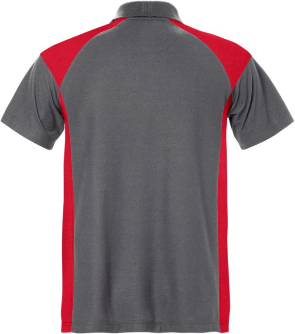 Contrast colour on shoulders and side panels / Rib-knit collar / Front placket with concealed buttons / Raglan sleeve / Side slits / Tone-in-tone stitches / Approved according to EN 13758-2 UPF 40+ Solar UV Protective Properties / Leasing-laundry tested according to ISO 15797 / OEKO-TEX certified. Material: 55% cotton, 45% polyester. Sizes: XS-3XL. 556 Navy/Hi-Vis Yellow, 586 Navy/Grey, 982 Black/Hi-Vis Yellow, 996 Black/Grey XS-4XL. Features: Hypoallergenic: No Wash Info: – Maximum washing temperature 60°C, normal process;Do not bleach;Tumble drying possible, low temperature, exhaust temperature max. 60°C; Iron at maximum sole-plate temperature of 110°C without steam, steam ironing may cause irreversible damage;Do not dry clean Gender: Male Fabric Weight m2: Colour Names: F866:M3-1 Grey/ Red Certificate