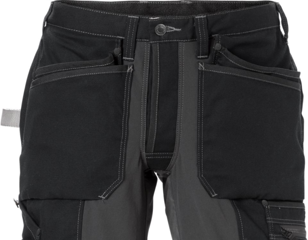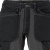 4-way stretch panels at front, back and legs / 2 CORDURA reinforced loose-hanging pockets, one with 3 smaller pockets and tool loops, the other with extra pocket and tool loops / 2 bellowed front pockets / 2 side pockets, one with zip / D-ring under loose-hanging pocket / 2 CORDURA-reinforced back pockets with loose bottom, one with flap and velcro fastening / Double reinforced crotch seam / Hammer loop / Folding rule pocket with tool pocket, pen pocket, button and loop for sheath knife / Multifunction leg pocket with phone pocket, ID-card pocket and water-resistant zip pocket / Pre-shaped knees / CORDURA-reinforced knee pockets with outside opening from above / Height adjustment for knee pads in knee pocket / Reflective piping at back leg / Pockets reinforced with metallic rivets at stress points / Contrast seams / Approved according to EN 14404 together with kneepads 124292. Material: 60% cotton, 40% polyester. Stretch fabric 91% nylon, 9% elastane. Sizes: C44-C62, D84-D120. Features: Hypoallergenic: No Wash Info: – Maximum washing temperature 60°C, normal process;Do not bleach;Tumble drying possible, low temperature, exhaust temperature max. 60°C;Do not iron;Do not dry clean Gender: Male Fabric Weight m2: Colour Names: F940:M3-1 Black Certificate