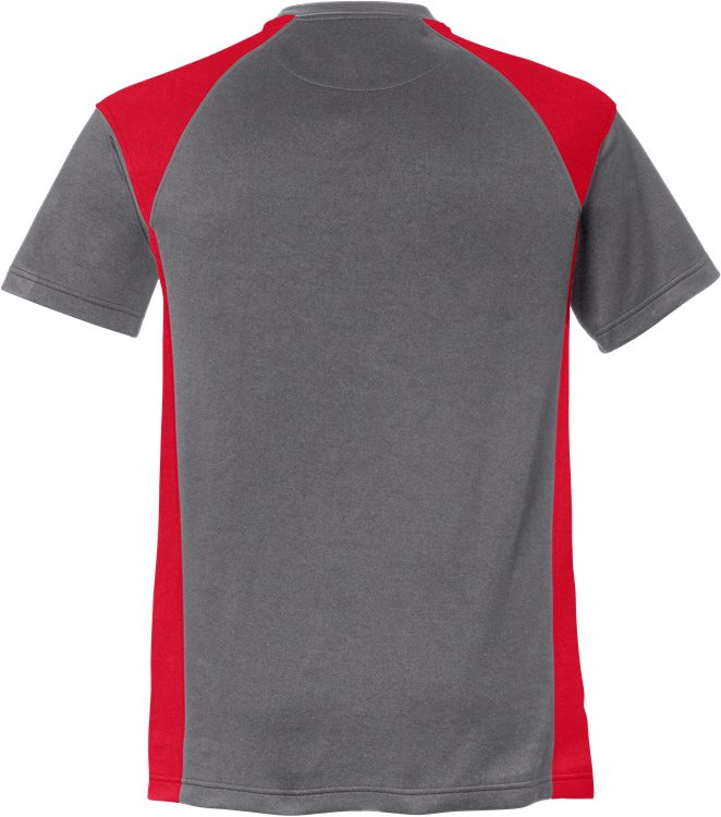 Contrast colour on shoulders and side panels / Round neck / Raglan sleeve / Tone-in-tone stitches / Approved according to EN 13758-2 UPF 40+ Solar UV Protective Properties / Leasing-laundry tested according to ISO 15797 / OEKO-TEX certified. Material: 55% cotton, 45% polyester. Sizes: XS-3XL. 556 Navy/Hi-Vis Yellow, 586 Navy/Grey, 982 Black/Hi-Vis Yellow, 996 Black/Grey XS-4XL. Features: Hypoallergenic: No Wash Info: – Maximum washing temperature 60°C, normal process;Do not bleach;Tumble drying possible, low temperature, exhaust temperature max. 60°C; Iron at maximum sole-plate temperature of 110°C without steam, steam ironing may cause irreversible damage;Do not dry clean Gender: Male Fabric Weight m2: Colour Names: F866:M3-1 Grey/ Red Certificate