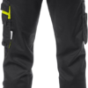 Mechanical stretch fabric / Dark grey reflective details / Concealed front button / 2 front pockets / 2 back pockets / Double crotch seam / 2 thigh pockets / Leg pocket with extra pockets / Loop for folding rule inside leg pocket / Leg pocket with flap and velcro fastening, mobile phone pocket and extra pocket with flap and velcro fastening, D-ring under flap / CORDURA-reinforced knee pockets with outside opening / Height adjustment for knee pads in knee pocket / CORDURA-reinforced leg ends / Approved according to EN 14404 together with kneepads 124292 / Leasing-laundry tested according to ISO 15797 / OEKO-TEX certified / D sizes in colour 965 available as make to order solution / RFID chip can be added as a VAS solution. Material: 65% polyester, 35% cotton. Sizes: C44-C62, C146-C156, D84-D120. Features: Hypoallergenic: No Wash Info: – Maximum washing temperature 85°C, normal process;Do not bleach;Tumble drying possible, low temperature, exhaust temperature max. 60°C;Iron at maximum sole-plate temperature of 150°C;Do not dry clean Gender: Male Fabric Weight m2: Colour Names: F982:M3-1 Black/ Hivis Yellow Certificate