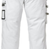 2 front pockets / D-ring on belt loop / 2 CORDURA-reinforced back pockets with loose bottom, one with flap and velcro fastening / Double reinforced crotch seam / Right leg pocket with pen holder, button and loop for sheath knife and CORDURA-reinforced folding rule pocket / Left multifunction leg pocket with phone pocket, ID card pocket, zip pocket and large inside pocket with snap fastener / Pre-shaped knees / CORDURA-reinforced knee pockets with inside opening / Height adjustment for knee pads in knee pocket / CORDURA-reinforced leg end, adjustable with snap fasteners / Reflective piping at leg ends / Pockets reinforced with metallic rivets at stress points / Contrast seams / Approved according to EN 14404 together with kneepads 124292 / OEKO-TEX certified. Material: 60% cotton, 40% polyester. Sizes: C34-C50. Features: Hypoallergenic: No Wash Info: – Maximum washing temperature 60°C, normal process;Do not bleach;Tumble drying possible, low temperature, exhaust temperature max. 60°C;Iron at maximum sole-plate temperature of 150°C;Professional dry cleaning in tetrachloroethene and all solvents listed for the symbol F, normal process Gender: Female Fabric Weight m2: Colour Names: F900:M3-1 White Certificate