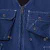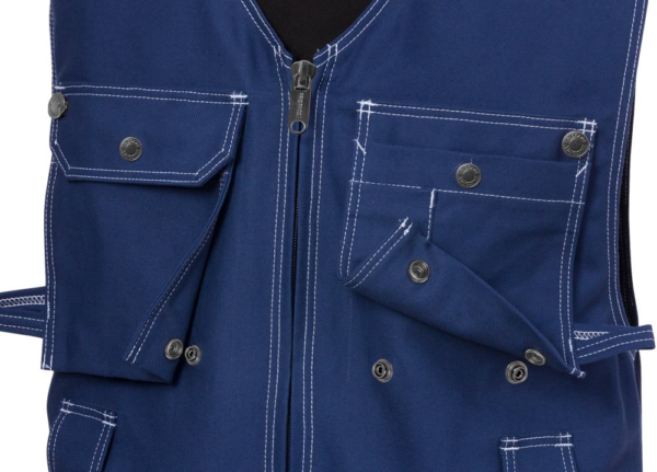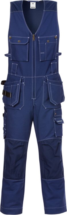 Two-way zip at front / 2 loose-hanging chest pockets with snap fastening, 1 with flap, 1 with pen pocket, buttons and loops for sheath knife / Belt loops / 2 tuckable, CORDURA reinforced loose-hanging pockets, 1 with extra pocket, 1 with 3 small pockets and tool loops / Stretch panel at back / 2 back pockets, 1 with flap / 2 hammer loops / Folding rule pocket with button and loop for knife / Leg pocket with tuckable id-card holder, mobile phone pocket and flap / CORDURA reinforced knee pockets with inside opening / Height adjustment for knee pads in knee pocket / Adjustable leg length with 5 cm hem allowance / Approved according to EN 14404 together with kneepads 124292 / OEKO-TEX certified. Material: FAS, Fristads best twill, 100% cotton. Stretch material 100% polyester. Sizes: C44-C66, D96-D128. Features: Hypoallergenic: No Wash Info: – Maximum washing temperature 60°C, normal process;Do not bleach;Tumble drying possible, low temperature, exhaust temperature max. 60°C;Iron at maximum sole-plate temperature of 150°C;Do not dry clean Gender: Male Fabric Weight m2: Colour Names: F541:M3-1 Blue Certificate