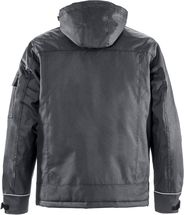 Windproof and water-repellent / Quilted lining / Zip to top of collar / Detachable, adjustable and lined hood / 2 chest pockets with flaps / 2 front pockets with zips / 1 inside pocket / 1 sleeve pocket with flap / Adjustable strap on sleeves / Reflective piping on sleeves / Drawstring at bottom / Waistband with logo print / Approved according to EN 342. Material: 100% polyester, lining 100% polyester. Sizes: 540 Dark Navy, 941 Dark Grey XS-4XL. 940 Black XS-5XL. Features: Hypoallergenic: No Wash Info: – Maximum washing temperature 40°C, normal process;Do not bleach;Do not tumble dry; Iron at maximum sole-plate temperature of 110°C without steam, steam ironing may cause irreversible damage;Do not dry clean Gender: Male Fabric Weight m2: Colour Names: F941:M3-1 Dark Grey Certificate