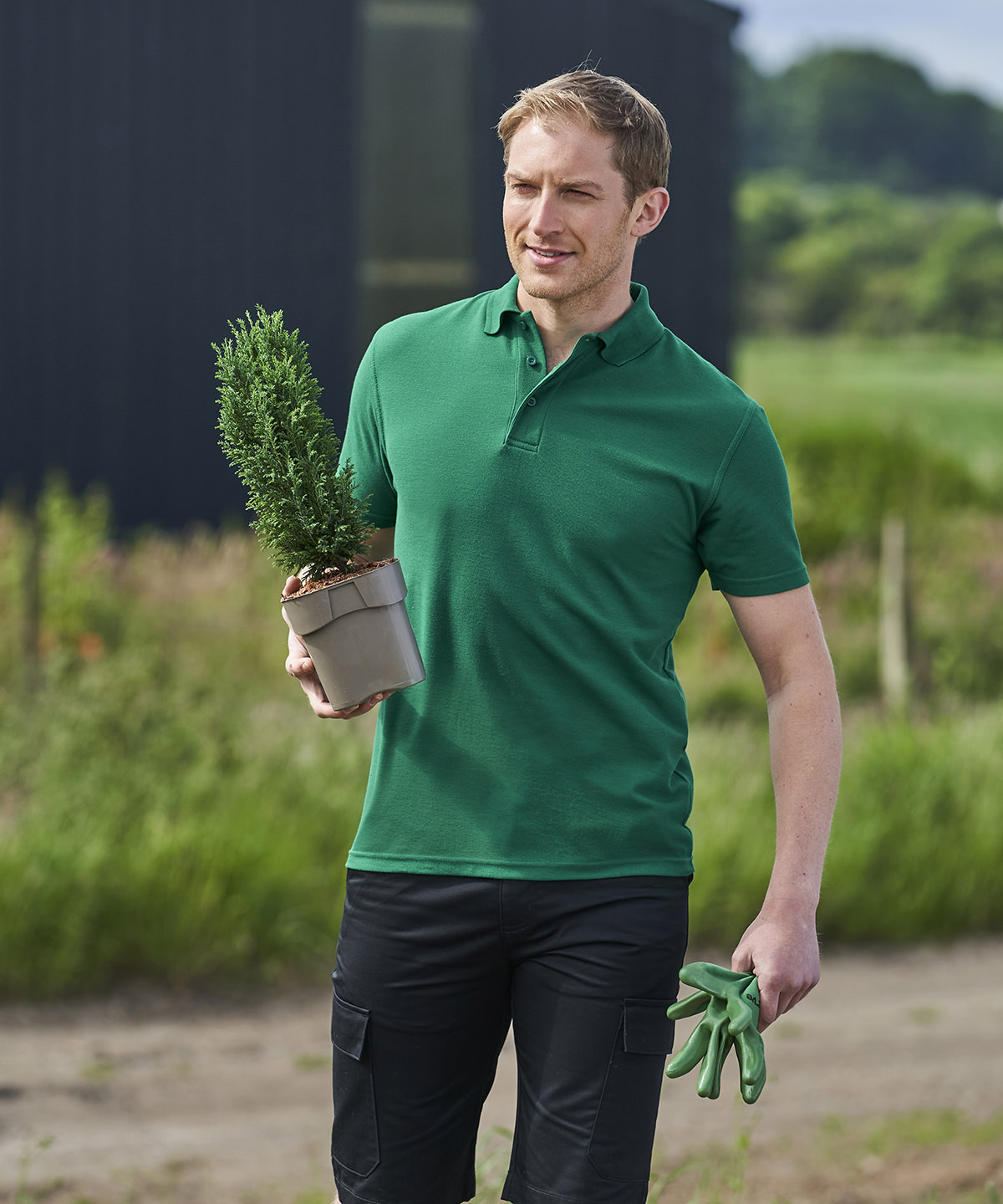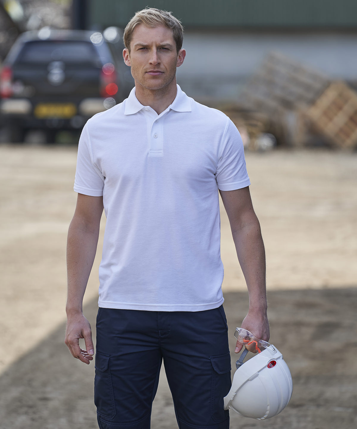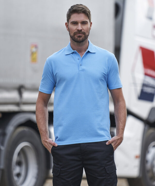 The Pro polo comes in a wide range of sizes to cater for work teams of all sizes, therefore is ideal for uniforms. It features a ribbed self collar, self taped neck, twin-needle stitching for durability and 3 self-coloured button placket, as well as a comfortable modern fit