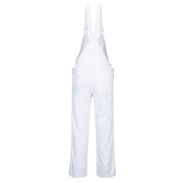 Made with 100% pre-shrunk cotton to provide good protection against paint spills. Features of this functional garment include a bib pocket with zip, one large front pouch pocket, knee pad, hip and rule pockets, elasticated back section and plastic non-corrosive buckles.